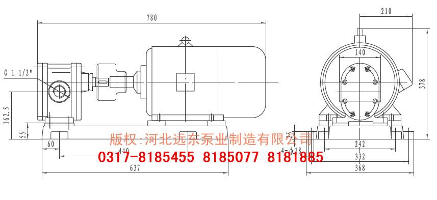 2CY7.5齒輪泵(bèng),流量:7.5m3/h,壓力:0.6Mpa,吸(xi)入真空高度(du):2米,口徑:G1 1/2",功率(lü):5.5KW 2CY7.5齒輪油泵配(pèi)5.5kw-4電機安裝尺(chi)寸圖 |