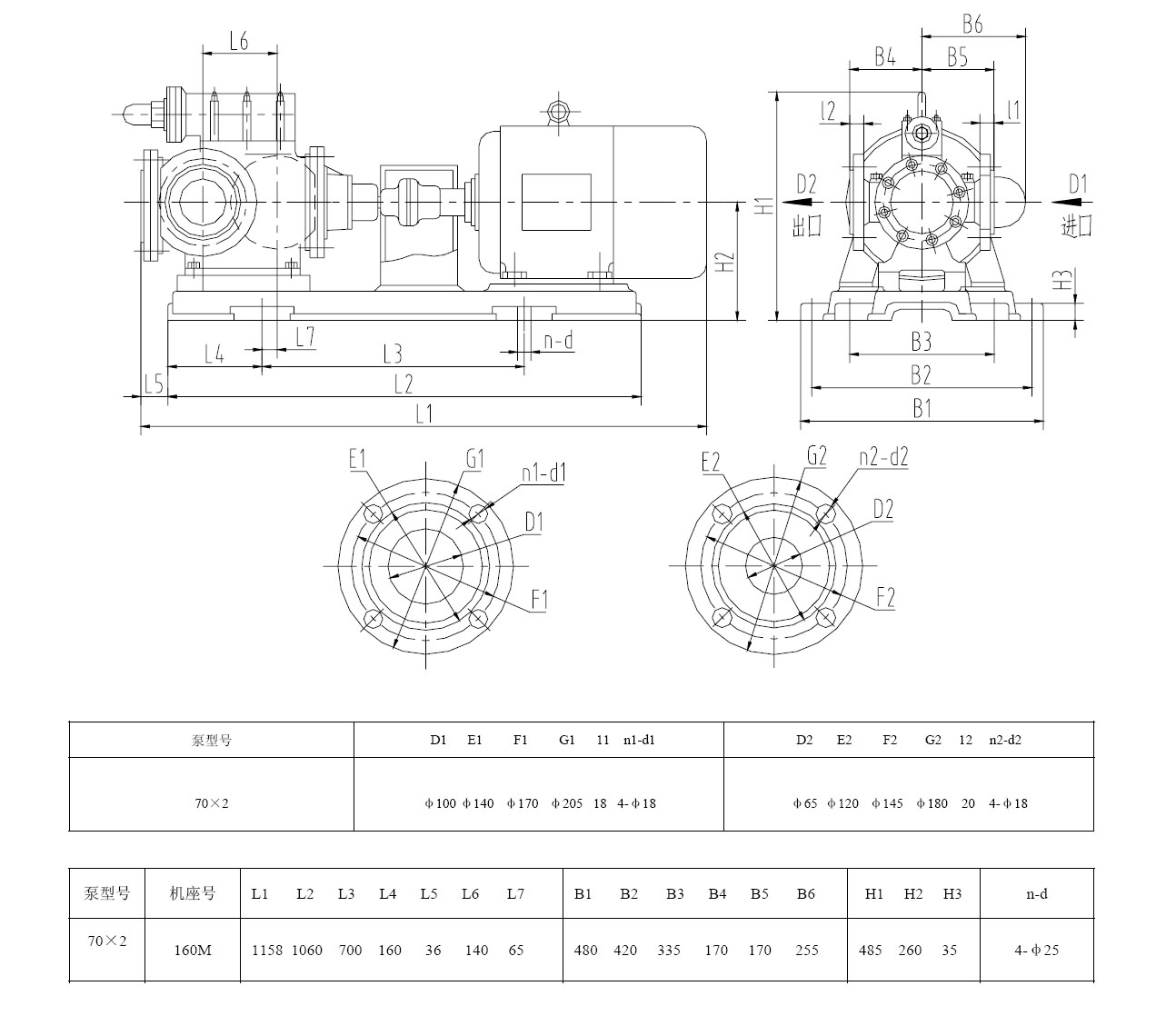 | 3GR70*2W2三螺杆泵配(pèi)7.5KW-4電機尺寸圖 |